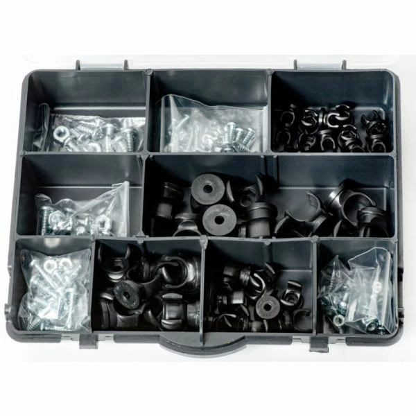 NotcHead soft line clamp builder kits offer everything you need for your project in one box. These assortments contain a selection of all three sizes of clamps, along with nuts, fasteners, and self-drilling screws. Centered set screws mean that you drill and tap holes right where you want your lines to go. Lines easily “snap in” with a push of your finger and eliminate the need for zip ties to run lines in parallel; once your lines are installed, the set screw is completely hidden from view. The clamps are made from high-strength copolymer acetal plastic with a melting point of 330 degrees F. They also have low-moisture sensitivity, great wear resistance, and are easy on painted parts. Your plumbing job will be quick, safe, and professional with NotcHead soft line clamp builder kits.