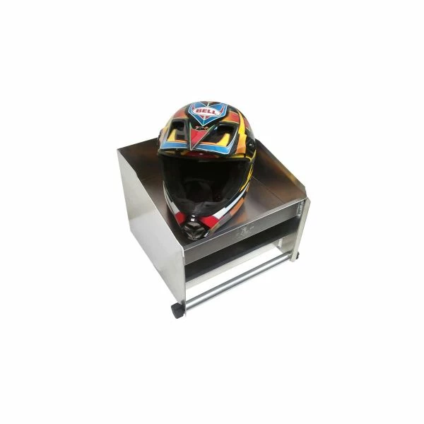 Store your helmet on top and other racing attire in the shelf below. Underside garment rack is perfect for hanging your garments and keeping them off the floor. A removable tube on the front can be used for many different applications as well.
