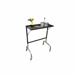 This Engine Repair Pit Table easily slips under frame rails & over radiator when car is on jacks to bring work station closer to motor & carburetor. A convenient mobile work station with adjustable heights and collapses for ease of storage in the trailer. Great for use in the dyno cell and machine shop to hold piston rods, etc.