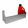 Heli-arc welded .090 aluminum racks mount easily on your trailer floor. Holds round or square 5 gallon fuel jugs safely inside your trailer.