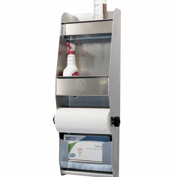 This shelf is designed for cleaning and detailing wherever it is needed. It holds 4 aerosol cans, paper towels, all purpose bottles, a bar for chamois, and latex gloves. Great for your garage, shop or trailer!